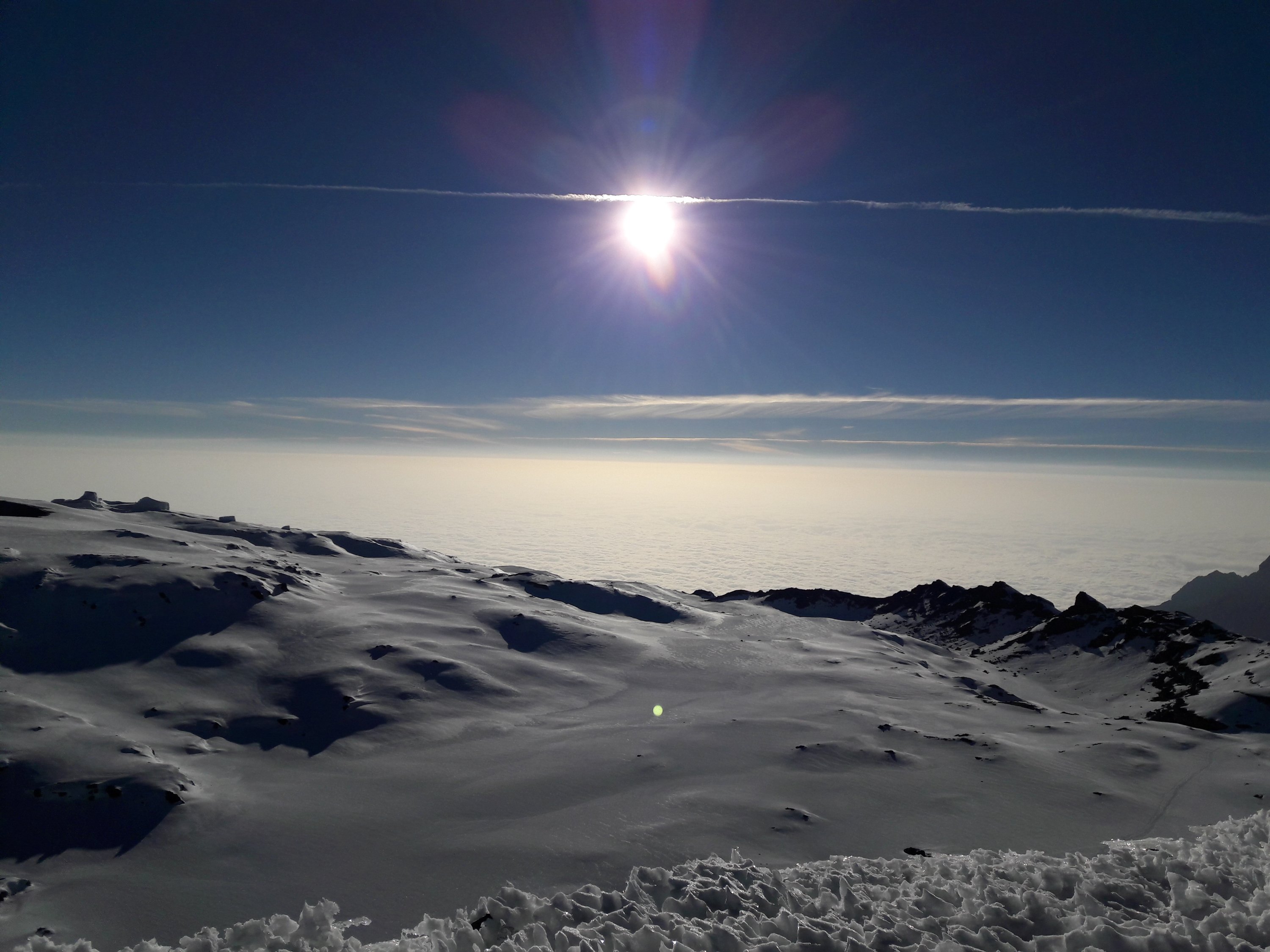 Manches mal gab es einfach auch gar keine Gedanken. Ich war eins – eins mit dieser Welt. Eine Auszeit vom Alltag, eine Auszeit, die am Gipfeltag dem Himmel so nah war wie ich es noch nie war. Nach einem 7 stündigen Aufstieg in der Nacht sind wir rechtzeitig zum Sonnenaufgang (bei Sonne, -15 grad Celsius und Schnee) am Gipfelkreuz angekommen und noch nie war ich an einem schöneren Ort, als diesen.