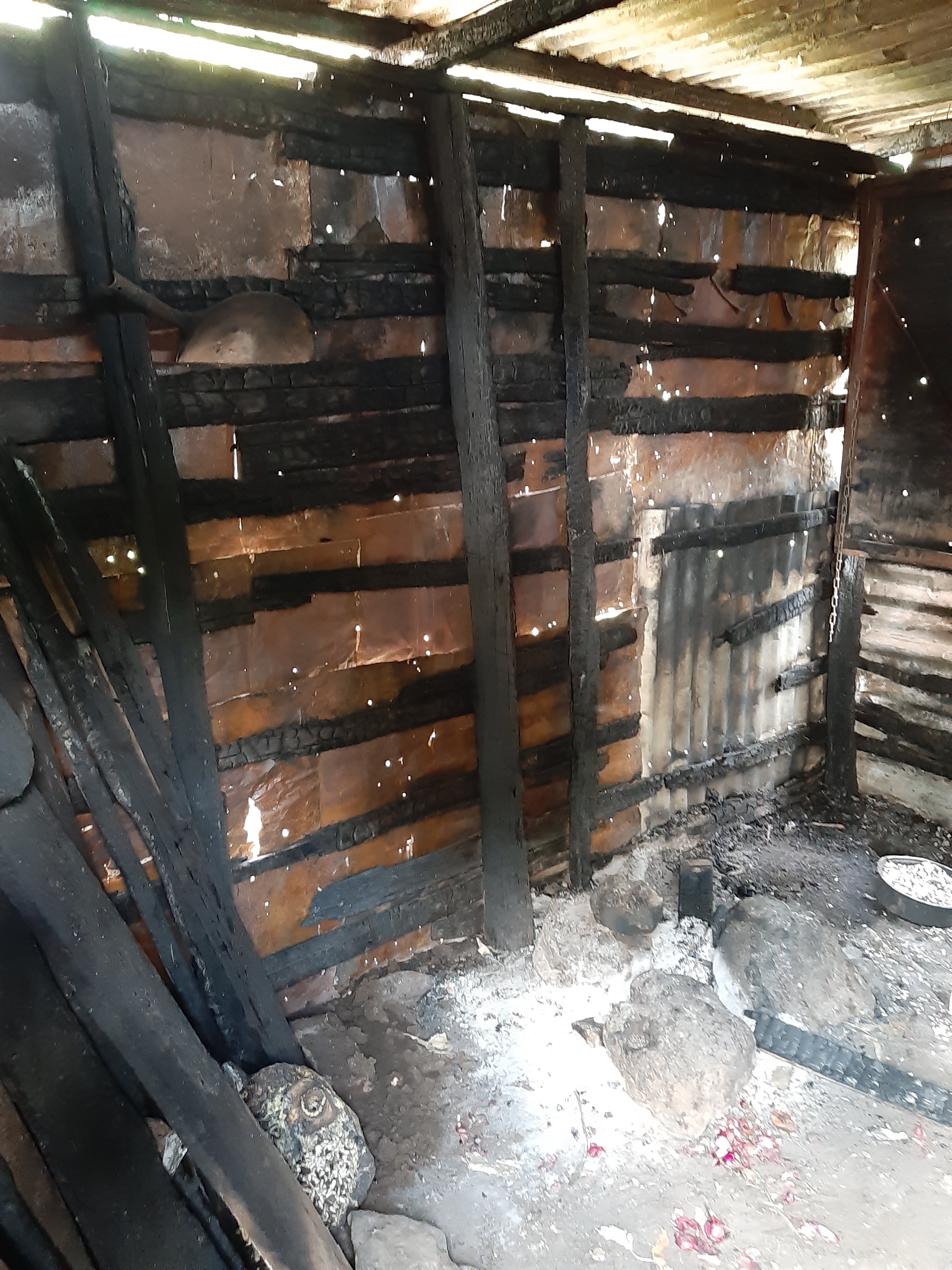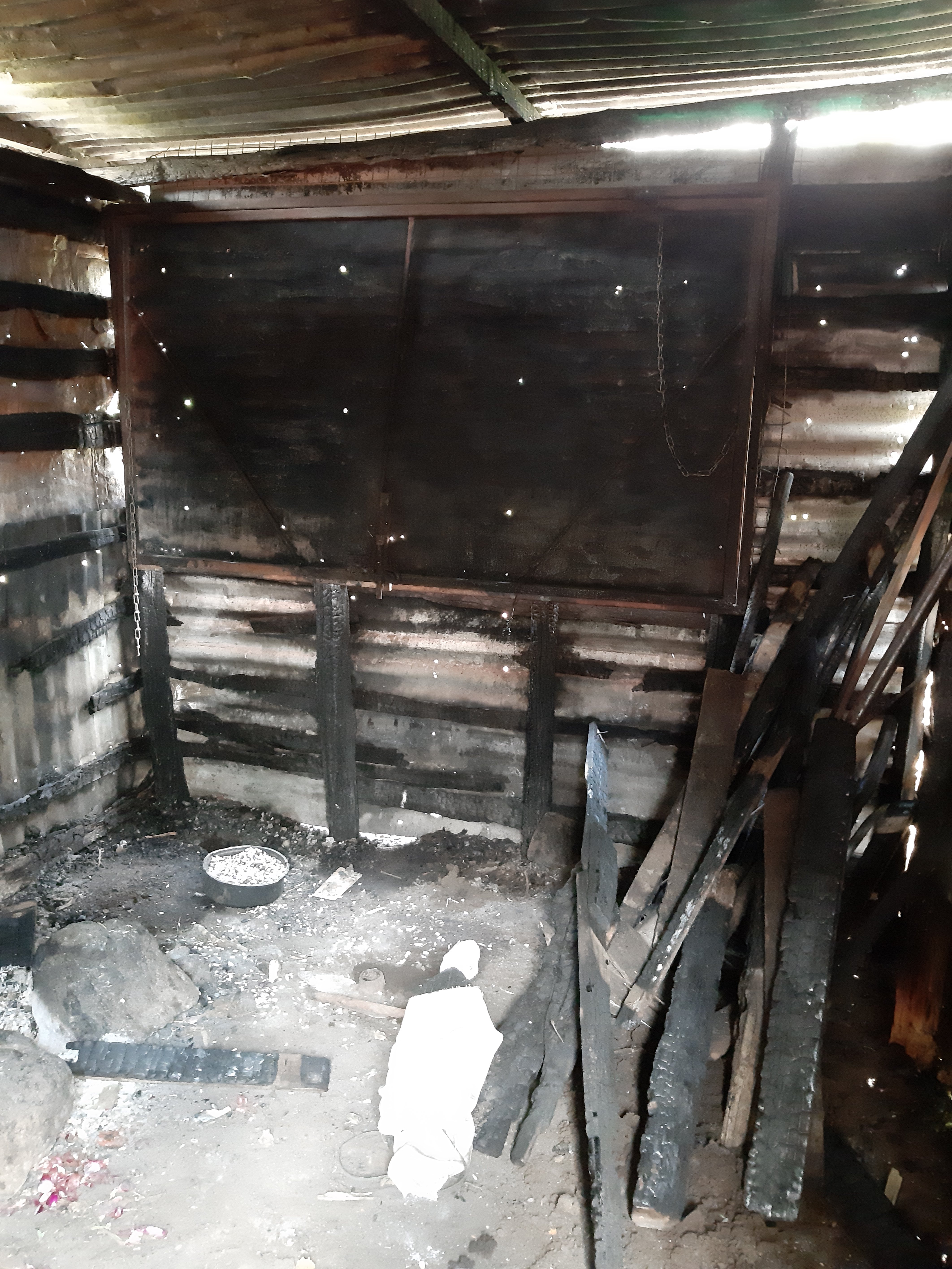 Leider hat es gebrannt letzte Woche. Der Hühner/Hasenstall ist hat Feuer gefangen und ist komplett abgebrannt. Neben dem Stall ist ihre Kochfeuerstelle gewesen. Sie kocht mit Holz. Es muss wohl irgendwie noch nachgeglüht haben und hat Feuer gefangen als sie nicht zuhause war. Alles weg. Die Hühner. Die Hasen. Schlimm. Als ich dort war und die verkokelten Reste gesehen hat… so schlimm. Die süße Maus war nur froh, dass das Wohnhaus (in dem ihre Kinder mit der Oma gewesen sind) nicht Feuer gefangen haben. „Nicht so schlimm, Mariya. Dann fang ich halt nochmal von vorne an.“