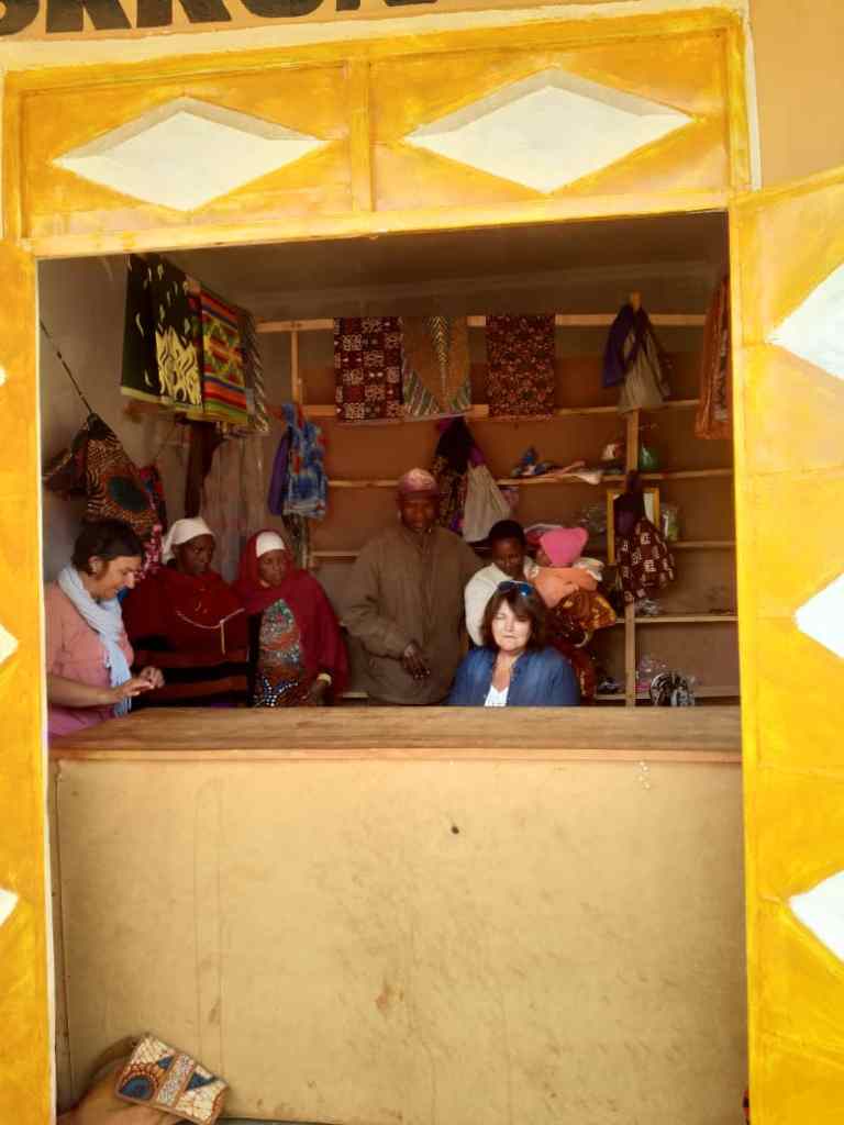 Dann empfängt Father Crisogon uns. Annett nennt ihn liebevoll Fater Chap Chap (der schnelle Father). Und so schnell lässt er auch die Glückskorken knallen. Was wollt ihr als Erstes sehen?. Den Laden wo die Mütter jetzt nähen. Ok. Und 5 Minuten später stehen wir vor dem Laden. In dem Laden, in dem nicht nur die Mütter sind (sondern auch deren Babys auf den Rücken geschnallt) und Stoffe und eine Nähmaschine und Taschen und Babykleider und und und…. Wir haben noch unterwegs überlegt, wann und wie der perfekte Zeitpunkte wäre durch zu starten. Na ja… .Father Chap Chap hat es einfach getan. So eine wunderbare Überraschung. Wirklich. Das ist eines unserer jüngeren Nähprojekt. Hier lernen Mamas, deren Kinder in die Bishop Mazzoldi Schule gehen. Die Mütter sind jedoch nicht in der Lage, das Schulgeld zu bezahlen. Nun lernen Sie nähen. In erster Linie werden sie die Schuluniformen nähen. Die Mazzoldi Schule hat ca. 200 Schüler (Tendenz steigend). Die tragen Schuluniform, die die Eltern bisher gekauft haben, um die Kinder einzukleiden. Nun kann das die Schule (gegen kleineres Geld) anbieten. Ein schöner Kreis schließt sich.