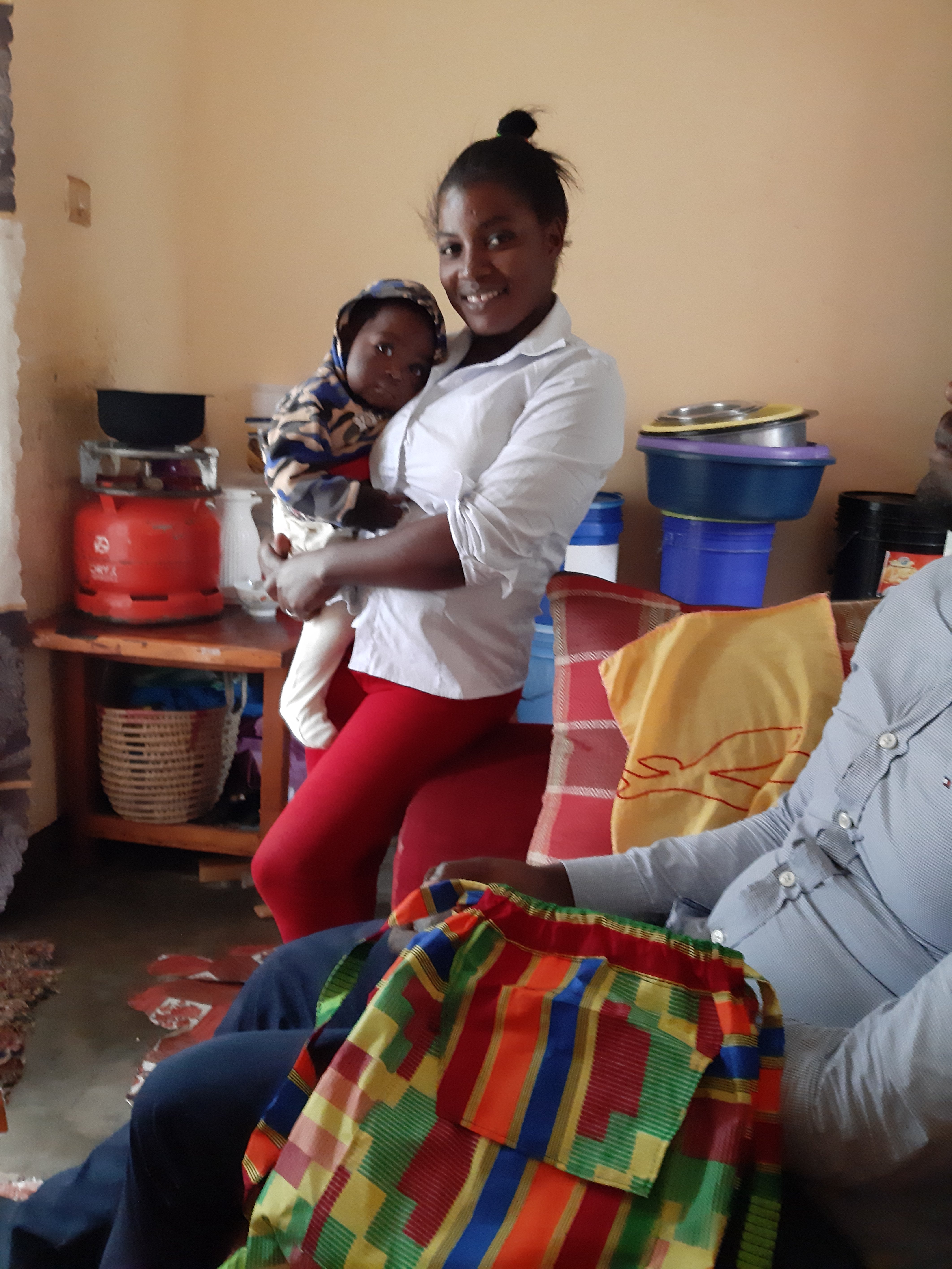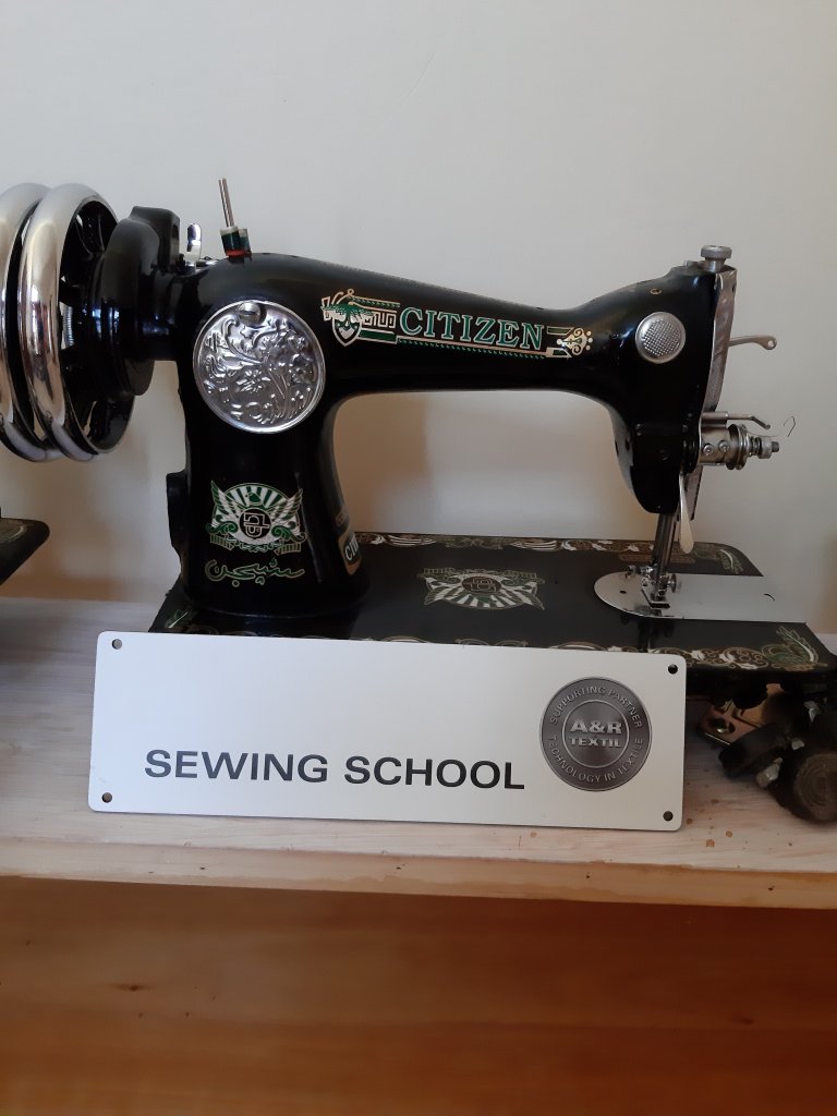 Zwei Lehrerinnen haben wir auch schon „getestet“. Da wird das Schild hoffentlich bald wieder in den neuen Räumlichkeiten angeschraubt. Und ganz viele Mamas werden an den Nähmaschinen sitzen und lernen.