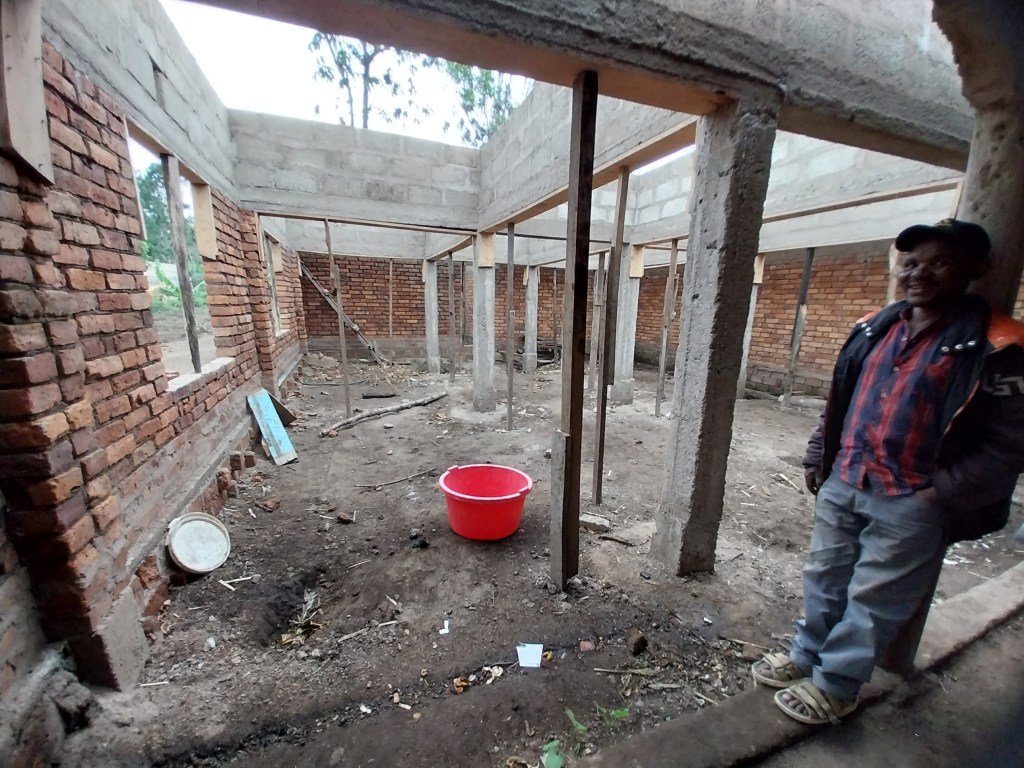 Sobald wir einen guten trockenen Tag haben, kommt das Dach drauf. Und Ende des Jahres sind wir hoffentlich fertig mit dem Bau und können innen alles fertig machen und für 10 Nähmaschinen Platz finden für die „ersten “ 10 Mamas.