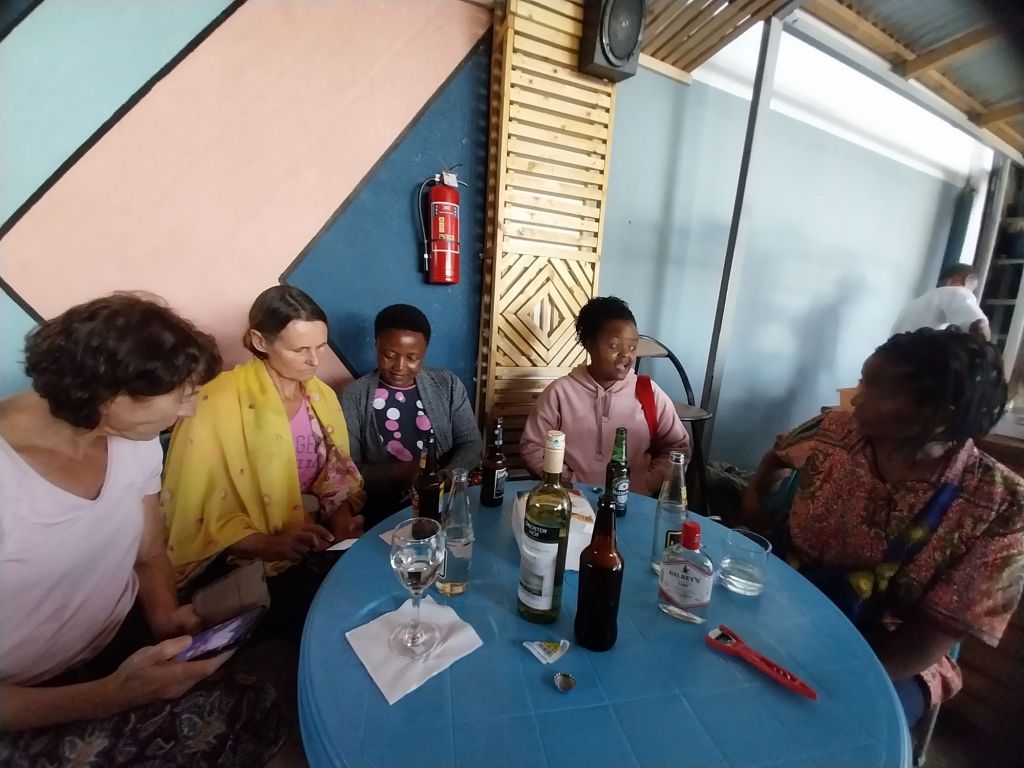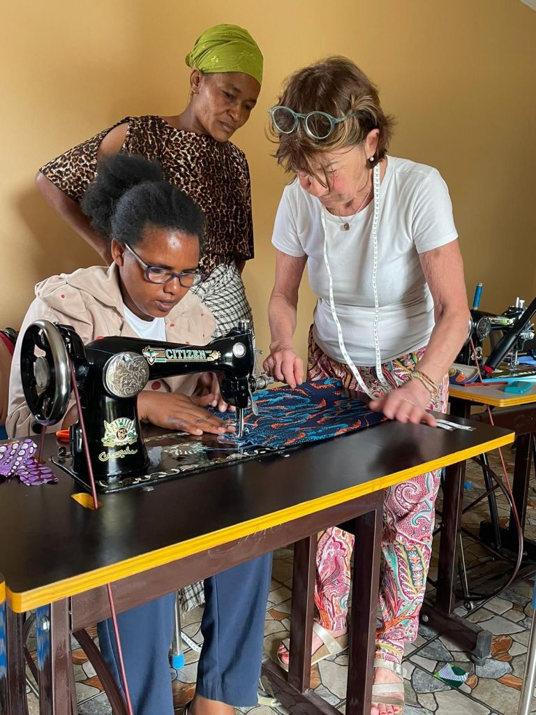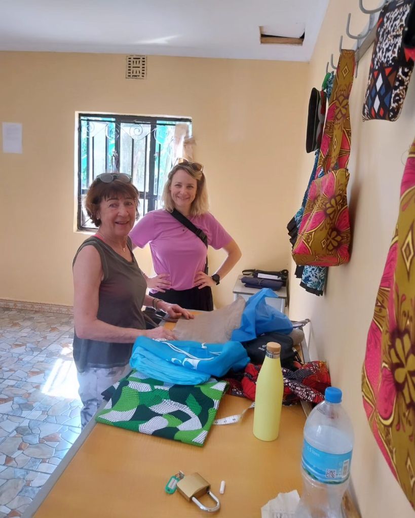 Und Strom, manchmal gibt es ihn – manchmal nicht. Der Strom, der zuhause auch unsere Waschmaschine und die Dusche (sofern wir Wasser hatten) in Warmdusche verwandelt hätte. Auf einmal freut man sich also über Wasser überhaupt – wer braucht schon warm! Und ode an die Stirmlampe, die Hannah damals und dieses Mal Martinas Mann für sie mit eingepackt hat. Die hat uns (da es ja ab 19Uhr dunkel ist) die ein oder andere Kochaktion erhellt! Und Elfi in der Nähschule wieder ohne Strom. Ich will doch die Stoffe bügeln – nimmt es nach Hause mit wo halt leider auch kein Strom war – also pole pole.. .machen wir in der Nacht oder morgen. In der Tat wasche ich auch total oft in der Nacht, wenn da Strom ist… was soll es.